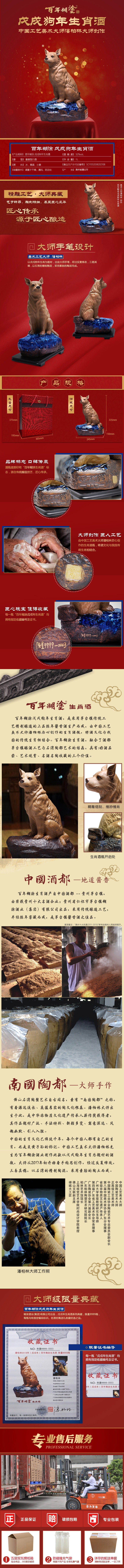 返回列表 百年糊涂酒-狗年生肖紀(jì)念酒 狗年生肖紀(jì)念酒 香型:醬香型白酒 酒精度:52%vol 凈含量:1L 產(chǎn)品描述: 口感特質(zhì):酒體醇厚、窖香濃郁、回味悠長(zhǎng)、空杯留香。得天獨(dú)厚地,貴質(zhì)自然成。源自茅臺(tái)鎮(zhèn)的醬香酒體,坐擁天時(shí)地利,吸收萬(wàn)物靈氣,傳承釀酒古法,地道醇厚,醬香突出,窖香濃郁,余韻悠長(zhǎng),空杯留香。酒瓶的生肖狗石灣公仔由中國(guó)工藝美術(shù)大師潘柏林制作而成,限量發(fā)售。整瓶狗年生肖酒的收藏價(jià)值極高。 線上購(gòu)買: 天貓 京東 產(chǎn)品詳情 推薦產(chǎn)品 百年糊涂酒-經(jīng)典小百年 經(jīng)典小百年 百年糊涂酒百福6# 百福6# 百年糊涂酒 藍(lán)純經(jīng)典 藍(lán)純經(jīng)典 返回頂部